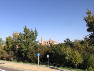 Inden vi sætter kursen mod vest, vil vi dog have gang i cyklerne og ind og se den gamle bydel i Salamanca. Der er fantastisk flot. Vi nyder en kold øl på Plaza Mayor og må så (desværre) vende næsen hjem ad, da det er ved at blive mørkt, og vi har glemt de nyindkøbte cykellygter i autocamperen. Det bliver et kapløb med tusmørket, og det ender med at vi cykler de sidste par km på hovedvejen i bælgmørke. Fy for pokker - for eftertiden får cykellygterne fast plads i cykeltaskerne, så vi ikke risikerer at glemme dem igen. Næste morgen er min cykel helt flad på baghjulet - der sidder 4 store torne godt plantet i dækket.....